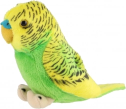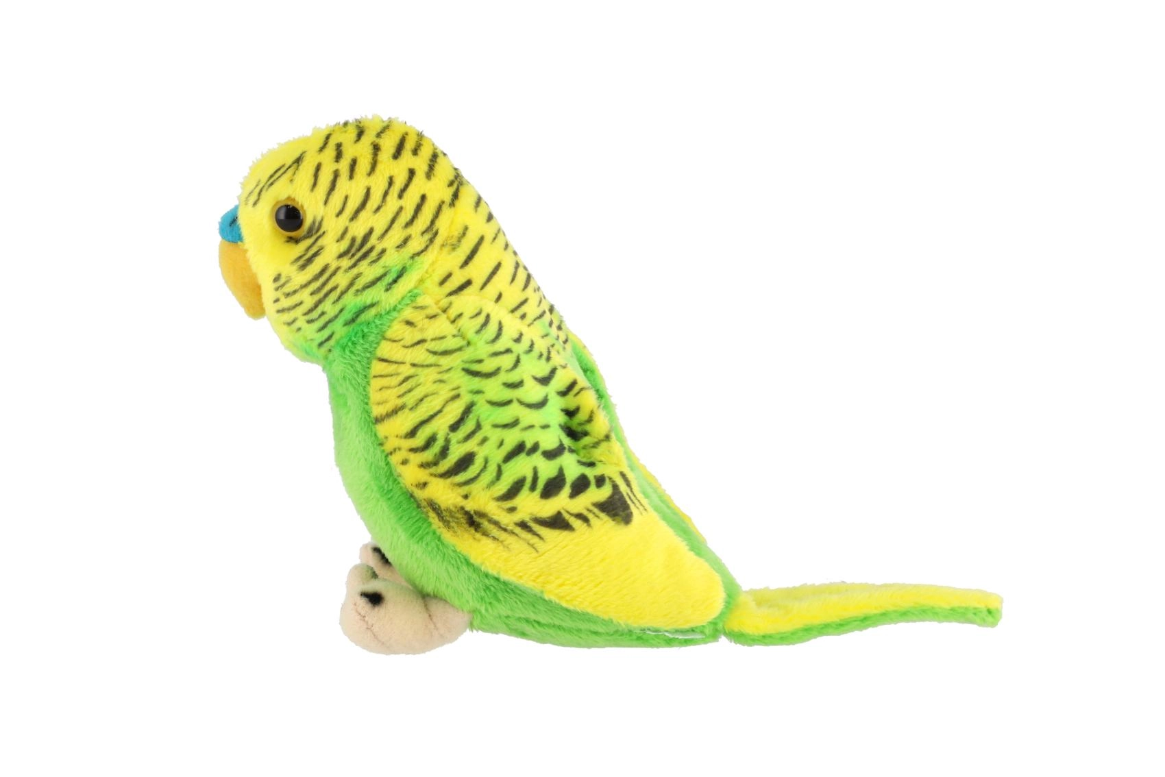La colorazione verde‑gialla con segni tipici e dettagli ricamati crea una fedele somiglianza con la cocorita.