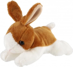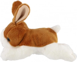 Il dolce coniglietto di peluche marrone e bianco in posizione sdraiata farà felici i bambini fin dalla nascita. È straordinariamente morbidoso, sicuro per i neonati e, grazie alle dimensioni compatte, si tiene perfettamente nelle manine. Ideale per coccole, rilassarsi e gioco fantasioso.