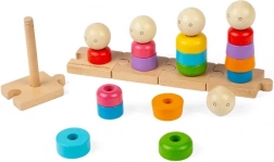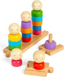 Scopri un gioco creativo per i più piccoli: set in legno con anelli colorati e personaggi da impilare su cinque aste, montate su una base a puzzle. I bambini possono combinare liberamente colori, forme e faccine, sviluppare la fantasia e imparare giocando. Il giocattolo favorisce la motricità fine, la coordinazione mano–occhio, il riconoscimento di colori e forme e la risoluzione dei problemi. Realizzato in legno certificato FSC e colorato con vernici atossiche, ispirato ai principi Montessori.