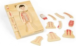 Scopri il corpo umano in modo giocoso con questo puzzle in legno di alta qualità. Grazie ai pezzi a strati, i bambini comprendono la struttura del corpo dallo scheletro agli organi, sviluppando motricità fine e pensiero logico. Realizzato in legno certificato FSC, con vernici atossiche e conforme alle normative di sicurezza europee.