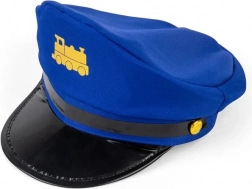 Il berretto blu con visiera nera lucida ed emblema giallo del treno ricrea subito l’atmosfera di una vera ferrovia.