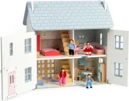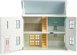 Un incantevole casetta delle bambole in legno nei delicati toni pastello con dettagli vittoriani porta con sé l’atmosfera estiva e un gioco senza fine. Offre 2 piani + soffitta, 4 stanze, 2 scale e facciata anteriore, finestre e porte apribili. Realizzata in legno certificato FSC® e rifinita con vernici atossiche, favorisce il gioco di fantasia, la motricità fine e lo sviluppo linguistico ed emotivo. Arredi e bambole non sono inclusi.