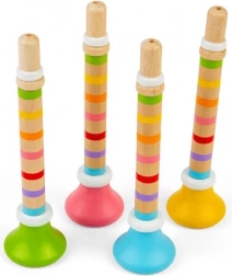 Una graziosa trombetta per bambini con vivace design a righe che piacerà ai piccoli musicisti. Stimola ritmo, coordinazione e creatività, si adatta perfettamente alla mano del bambino ed è realizzata in legno di qualità da fonti responsabili. Conforme alle norme europee di sicurezza. Il prezzo si riferisce a 1 pezzo. Disponibile in 4 varianti di colore.