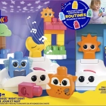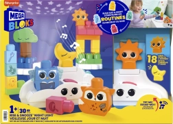 Il set interattivo Mega Bloks con luce notturna aiuta i bambini a creare una sana routine mattutina e serale. Include 4 personaggi e un ambiente costruibile. Sulla luce notturna si può inserire il blocco luna o il sole per avviare ninne nanne, suoni delicati, effetti luminosi e un proiettore di stelle per la sera, oppure canzoncine allegre, suoni dell’ambiente e pattern luminosi solari per il mattino. Ideale per bambini da 1 anno.
