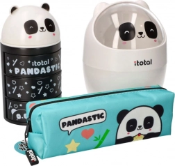 L'astuccio si distingue per la grafica della panda e uno sfondo pieno di cuoricini, stelline e canne di bambù, che ne esaltano il carattere giocoso.