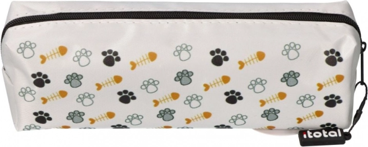 L’astuccio bianco con stampa di gatti e zampette attira l’attenzione e dona uno stile giocoso al materiale scolastico.