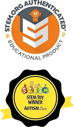 Il gioco sviluppa percezione spaziale, logica e pensiero creativo. Perfetto per l’apprendimento a casa e in classe, con ispirazioni nel libretto e su YouTube.