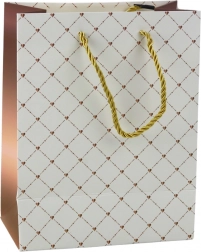 Questa elegante borsa regalo è la scelta ideale per confezionare un regalo eccezionale. Realizzata in carta di alta qualità, si distingue per il raffinato e stiloso motivo a griglia sottile con accenti lucenti che le conferiscono un carattere unico e un'eleganza raffinata. Grazie al suo design universale, è adatta a varie occasioni - dai compleanni e anniversari alle festività e agli eventi sociali.