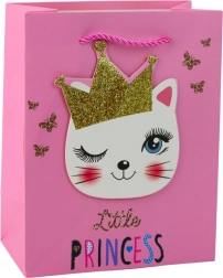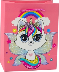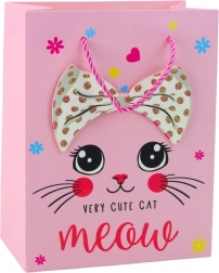 Borsa regalo di carta rosa con gattini e glitter 23 x 18 x 10,5 cm