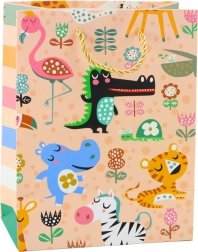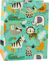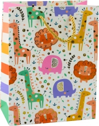 Questa borsa regalo di carta con motivi animali safari aggiungerà fascino ai vostri regali. Ogni borsa è realizzata con un design robusto e colorato che attirerà chiunque. I manici solidi offrono trasportabilità comoda, mentre i motivi attraenti pieni di animali felici cattureranno l'attenzione di bambini e adulti.