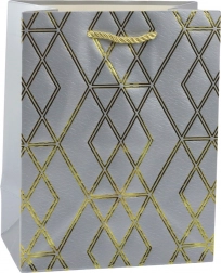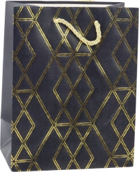Il motivo geometrico delle linee dorate si abbina perfettamente con lo sfondo nero profondo, donando al design un carattere sofisticato. Questa borsa è la scelta perfetta per compleanni, anniversari, festività e altre occasioni speciali.