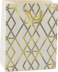 Questa elegante borsa regalo è realizzata in cartone decorativo di alta qualità, che assicura durata e resistenza agli strappi. Solidi manici dorati a cordoncino forniscono un trasporto comodo e aggiungono eleganza e stile. Grazie al suo carattere universale, è adatta come confezione regalo per uomini e donne.