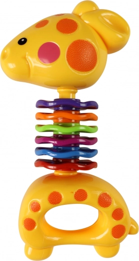 Il simpatico sonaglino a forma di giraffa è ideale per i più piccoli. Grazie ai colori piacevoli e all'effetto sonoro favorisce lo sviluppo della motricità fine e la percezione visiva. La forma leggera si impugna facilmente e intrattiene il bebè a casa e in viaggio.