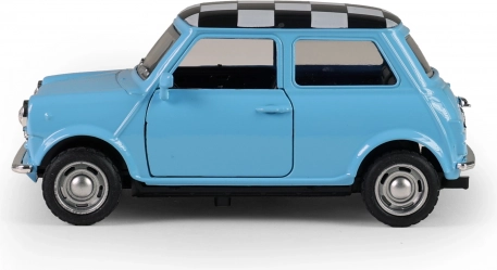Paraurti cromati, griglia del radiatore e l'iconico tetto a scacchi conferiscono al modello l'aspetto fedele del classico Mini.