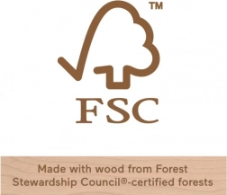 Come simbolo di produzione sostenibile, il giocattolo porta il certificato FSC, che conferma l'uso responsabile delle materie prime forestali.