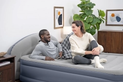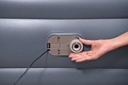 Grazie alla pompa elettrica integrata prepari il materasso senza sforzo in pochi minuti. La testiera integrata LoungeLux aumenta il comfort durante la lettura o la visione della TV e il bordo perimetrale mantiene il corpo al sicuro al centro. Una volta sgonfiato, il materasso si ripiega in modo compatto nella borsa in nylon in dotazione, perfetto per viaggiare e per uno stoccaggio salvaspazio.