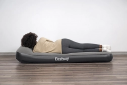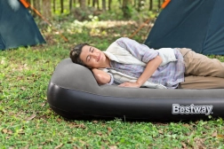 Goditi un sonno tranquillo ovunque tu sia. Il letto gonfiabile BESTWAY Tritech combina la solida struttura interna I‑Beam con il resistente materiale Tritech, che mantiene la forma anche con un uso prolungato. La piacevole superficie in velluto impedisce lo scivolamento delle lenzuola e garantisce comfort per tutta la notte.