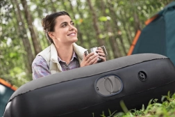 La pompa USB 5V/2A integrata gonfia il materasso in circa 3 minuti ed è disponibile anche l’opzione di gonfiaggio con pompa manuale. Il cuscino integrato aumenta il comfort; una volta sgonfio, il materasso è compatto e facile da trasportare e riporre: ideale per campeggio, camera degli ospiti o come letto temporaneo.