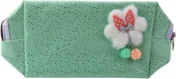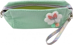 Questa pochette versatile nella delicata tonalità menta unisce un design giocoso a dettagli pratici. Le particelle scintillanti aggiungono un tocco elegante, mentre la decorazione frontale con nuvoletta pelosa con fiocchetto e i pompon colorati enfatizzano lo stile carino.