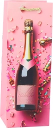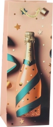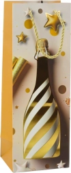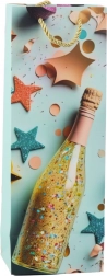 Elegante borsa regalo in carta per bottiglia con motivo champagne, ideale per consegnare con stile vino o spumante a ogni festa. Offre cartoncino decorativo robusto, manici intrecciati dorati e un design festoso con coriandoli e stelle in colori pastello. Perfetta per compleanni, matrimoni, Capodanno e altri momenti speciali.
