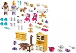 Immergiti nel mondo del gioco creativo con la cucina reale Playmobil Principessa Magica. Due principesse, vestite con graziosi grembiuli, preparano delizie e le servono su vassoi decorativi. Il set offre molti dettagli, tra cui mobili splendidamente progettati e attrezzi da cucina realistici che portano la magia della cucina reale in vita.