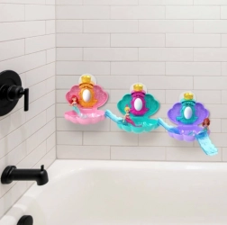 Apri la conchiglia scintillante e scopri la dolce sirenetta ispirata all’amato mondo della Sirenetta. Grazie alla ventosa puoi fissare il set su piastrelle lisce o sul bordo della vasca e far scendere la sirenetta dallo scivolo d’acqua. Un gioco da bagno ideale che stimola la fantasia e il gioco autonomo.