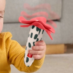Set di due morbidi giochi per i più piccoli che stimolano vista, tatto e udito. L’apina con campanellino e il fiorellino–sonaglio sono progettati per essere facili da afferrare, invogliare all’esplorazione e alimentare la naturale curiosità dei bambini. Grazie ai colori a contrasto, alle texture varie e ai suoni delicati, supportano lo sviluppo sensoriale precoce.