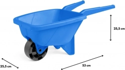 La leggera e resistente carriola per bambini di colore blu farà felici i piccoli costruttori in giardino, al parco giochi e in spiaggia. Ha dimensioni compatte di 53 cm, impugnature ergonomiche per una guida facile ed è realizzata in plastica di qualità, sicura e resistente. Perfetta per trasportare sabbia, foglie, giocattoli e piccoli sassolini e per sviluppare motricità e coordinazione.