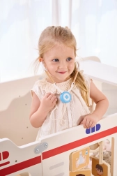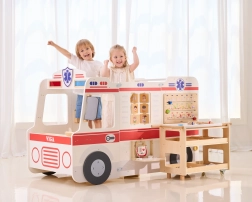 I bambini guidano, curano e gestiscono le chiamate – tutto in un robusto veicolo in legno ricco di elementi interattivi che li immergono nel gioco.