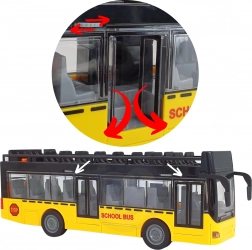 Questo modello di scuolabus presenta un design realistico con la scritta 'SCHOOL BUS' e finestre aperte. Ideale per conoscere il design dei veicoli.