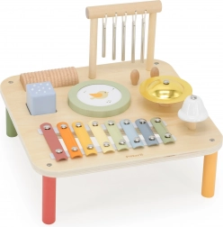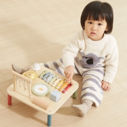 Ogni elemento del tavolino nasconde uno strumento affascinante diverso che stimola a sperimentare e creare melodie proprie. Questo giocattolo multifunzionale è progettato per supportare lo sviluppo sensoriale e creativo dei bambini già da 18 mesi.