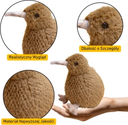 Giocattolo morbido uccello kiwi di dimensioni 21 cm offre un autentico aspetto marrone chiaro di questo uccello unico. Realizzato in materiale morbido e piacevole al tatto per il massimo comfort durante le coccole.
