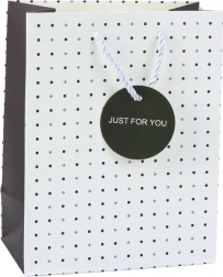 Elegante e universale borsa regalo a pois con la scritta 'Just For You' offre un modo elegante di confezionare regali per varie occasioni.