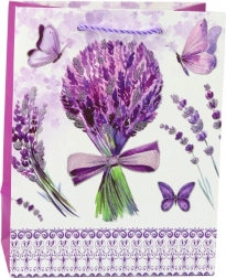 Il motivo ispirato ai campi di lavanda dona al packaging dei regali romanticismo ed eleganza.