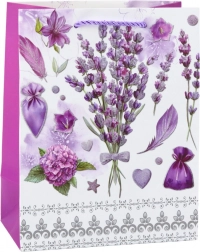 La borsa è realizzata in cartone decorativo di alta qualità, garantendo la sua durata e un aspetto estetico anche con un uso frequente. Il motivo di lavanda combinato con accenti scintillanti ed elementi viola aggiunge fascino ed eleganza all'insieme. I manici a corda viola robusti assicurano un comodo trasporto, e la costruzione solida permette di confezionare in sicurezza regali di piccole e medie dimensioni.