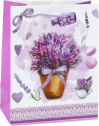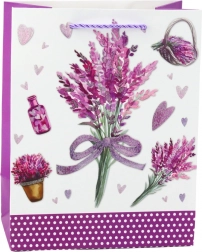 Vi presentiamo la borsa regalo di carta con un incantevole motivo di lavanda e delicati elementi scintillanti. Questo design romantico ispirato alla bellezza dei campi di lavanda offre la confezione ideale per regali in diverse occasioni, come compleanni, anniversari o incontri amichevoli.