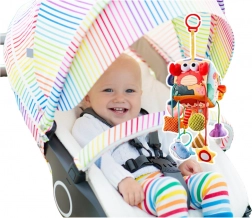 Il cubo sensoriale è dotato di una pratica clip sospesa che consente di attaccarlo facilmente sul seggiolino auto, passeggino, sdraio o culla. In questo modo, il giocattolo accompagna il bambino sia a casa sia in viaggio.
