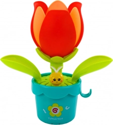 Riempendo il annaffiatoio incluso e annaffiando il fiore, i petali iniziano ad aprirsi gradualmente rivelando un simpatico personaggio giallo. Questo momento affascinante sicuramente strapperà un sorriso al volto di ogni bambino e lo incoraggerà a giocare ancora. Questo giocattolo non solo offre grande divertimento, ma sviluppa anche la coordinazione mano-occhio, la pazienza e la comprensione delle relazioni causa-effetto.