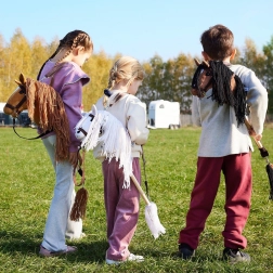 Parti per un'avventura con i bambini con il cavallo a bastone Hobbihorse della collezione Sport Edition. Questo cavallo è pensato non solo per il gioco, ma anche per l'allenamento e le gare immaginarie. Grazie al bastone di legno stabile e al manico sportivo in silicone, i bambini godranno di un divertimento sicuro e confortevole.