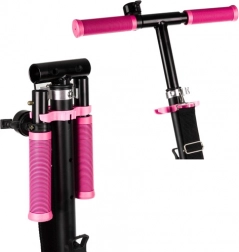 La sicurezza è assicurata da pedana antiscivolo, grip pieghevoli antiscivolo e affidabile freno a pedale integrato nel parafango posteriore. Grazie al manubrio regolabile 87–92–98 cm, il monopattino si adatta all’altezza del bambino e cresce con lui.