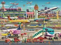 Il puzzle "All’aeroporto" di Ravensburger è la scelta ideale per bambini e adulti che vogliono divertirsi componendo. È composto da 150 pezzi e una volta completato misura 49 x 36 cm.