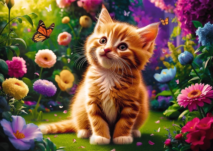 Godetevi momenti di calma con il puzzle Trefl, che raffigura un tenero gattino circondato da fiori. I tagli precisi e il cartone robusto assicurano che i pezzi si incastrino perfettamente e l’immagine finale spicca per dettagli nitidi e colori intensi.