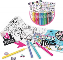 Scopri un divertimento senza fine con il set Style4Ever libro da colorare a rotolo – un rotolo lungo 4 metri da colorare, 12 pastelli in colori vivaci e 50+ adesivi per personalizzare con originalità. Ideale per bambini dai 6 anni, sviluppa motricità fine, creatività e concentrazione – divertimento perfetto per ore e ore.