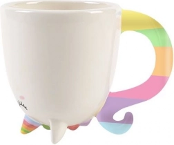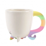 Ceramica bianca con manico/coda arcobaleno e dolce faccina: un look tenero e originale. Ideale come decorazione e tazza per tutti i giorni.