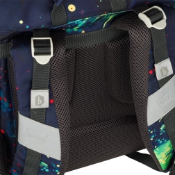 Lo zaino è progettato per bambini con altezza da 110 a 135 cm. Dispone di una struttura monocamera con tasca per cartelle ed è dotato di una pratica chiusura Magnetic Click. Impermeabile e realizzato con materiali riciclati, lo zaino è dotato di elementi riflettenti per la sicurezza dei bambini in condizioni di scarsa visibilità.