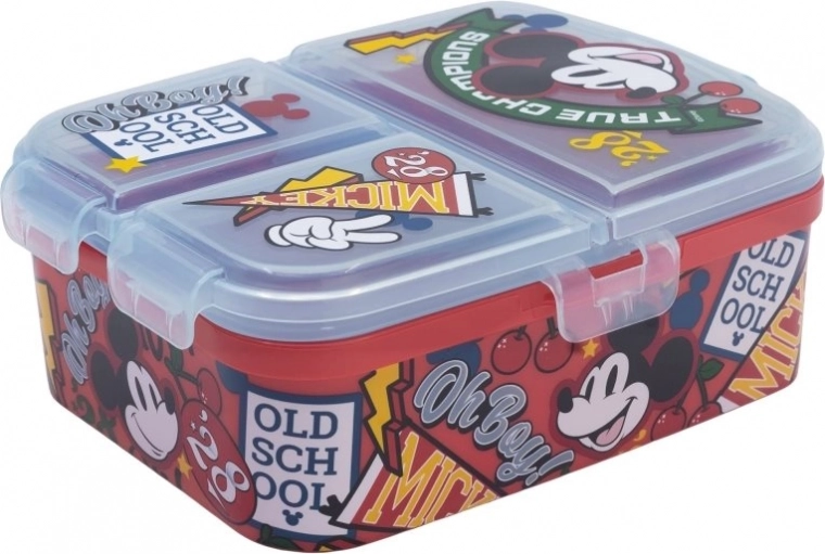 Il box per spuntini si distingue per il motivo vivace di Mickey Mouse, che offre un'esperienza interattiva durante i pasti.