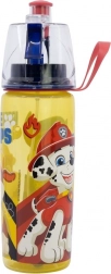 Borraccia in plastica per bambini con motivo Paw Patrol. La bottiglia con una capacità di 575 ml è senza BPA e include un beccuccio per bere facilmente e un pulsante nebulizzatore per rinfrescarsi durante le giornate calde.