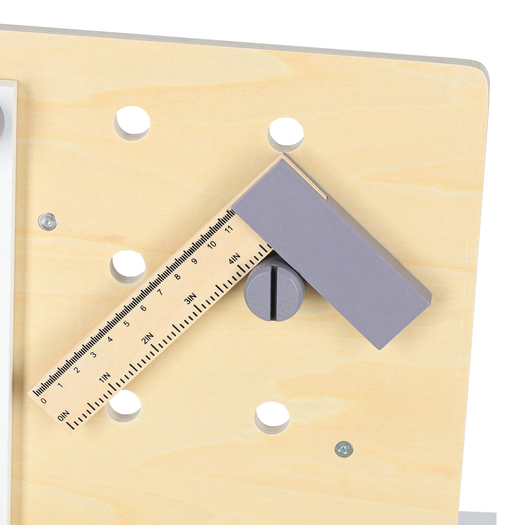 La maniglia funzionale della morsa e il piano con fori permettono ai bambini di fissare in sicurezza i pezzi ed esercitare abilità di base come in una vera officina.