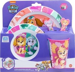 Un adorabile e pratico set per la pappa 5 in 1 per bambini con il motivo PAW PATROLstampa colorata. Include piattino, ciotola, cucchiaino, forchettina e bicchiere. Il set è senza BPA e il bicchiere è adatto al microonde (600 W / 2 min).