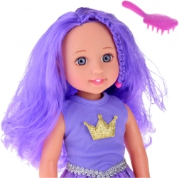 La bambola è vestita in un abito viola con una corona scintillante sul petto e una delicata fascia d'argento, che dà un aspetto regale. Le sue ballerine rosa completano perfettamente l'outfit. Grazie alle braccia e gambe mobili, la bambola può essere posizionata in varie pose, offrendo ai bambini spazio per creare le proprie storie. Realizzata in plastica resistente, è pronta per il gioco quotidiano ed intenso.